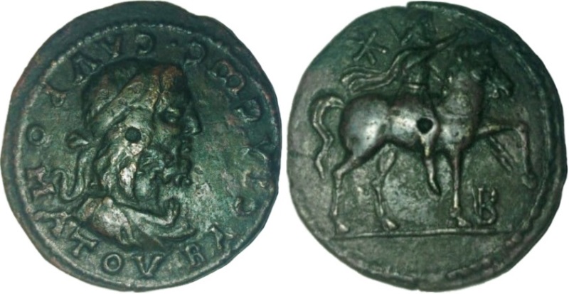 - ΒΑCΙΛΕωC CΑΥΡΟΜΑΤΟΥ. Легенда против часовой стрелки. Бюст царя в повязке вправо.