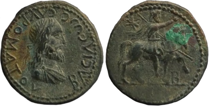 - ΒΑCΙΛΕωC CΑΥΡΟΜΑΤΟΥ. Легенда против часовой стрелки. Бюст царя в повязке вправо.