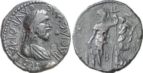 ΒΑCΙΛΕωC CΑΥΡΟΜΑΤΟΥ. Бюст царя в повязке вправо.