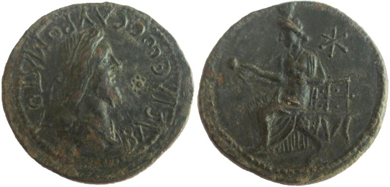 ΒΑCΙΛΕωC CΑΥΡΟΜΑΤΟΥ. Бюст царя в повязке вправо, справа звезда выполненная схематично точками