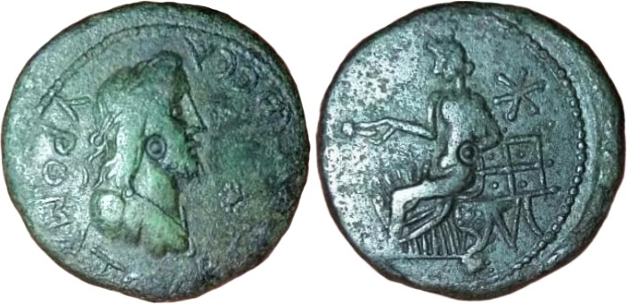 ΒΑCΙΛΕωC CΑΥΡΟΜΑΤΟΥ. Бюст царя в повязке вправо, справа звезда выполненная схематично точками