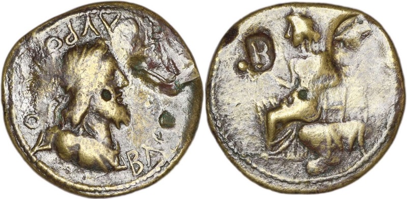 ΒΑCΙΛΕωC CΑΥΡΟΜΑΤΟΥ. Бюст царя в повязке вправо, справа звезда выполненная схематично точками