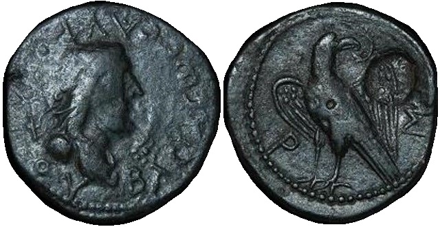 - ΒΑCΙΛΕωC CΑΥΡΟΜΑΤΟΥ. Бюст царя в повязке вправо, справа от бюста звезда выполненная схематично точками