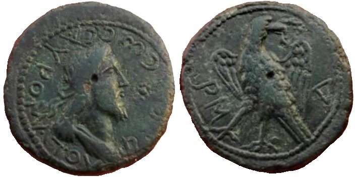 - ΒΑCΙΛΕωC CΑΥΡΟΜΑΤΟΥ. Бюст царя в повязке вправо, справа от бюста звезда выполненная схематично точками