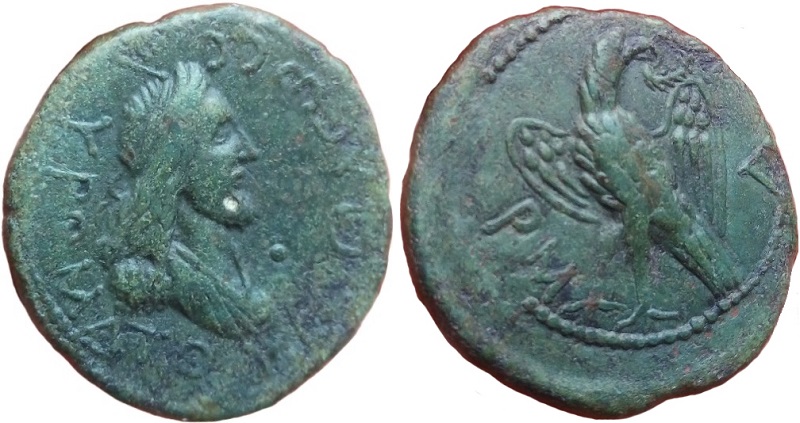 - ΒΑCΙΛΕωC CΑΥΡΟΜΑΤΟΥ. Бюст царя в повязке вправо, справа от бюста звезда выполненная схематично точками