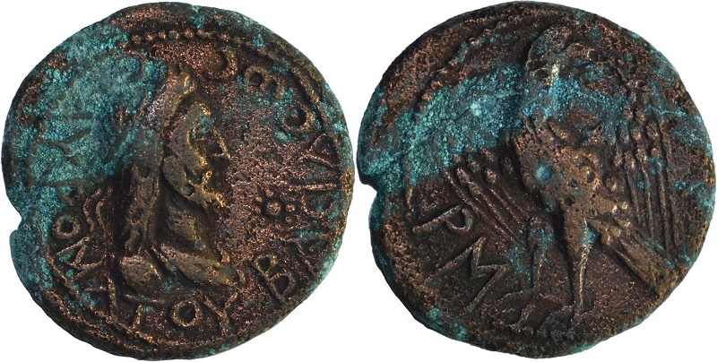 - ΒΑCΙΛΕωC CΑΥΡΟΜΑΤΟΥ. Бюст царя в повязке вправо, справа от бюста звезда выполненная схематично точками