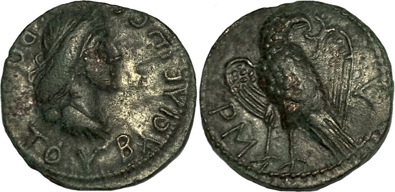 - ΒΑCΙΛΕωC CΑΥΡΟΜΑΤΟΥ. Бюст царя в повязке вправо.