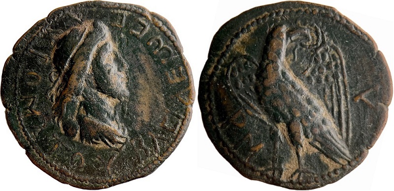 - ΒΑCΙΛΕωC CΑΥΡΟΜΑΤΟΥ. Бюст царя в повязке вправо.