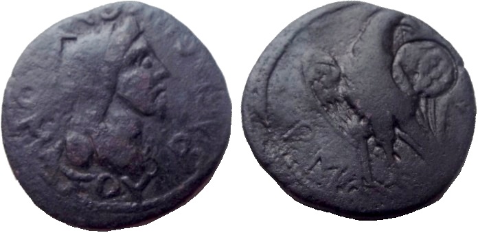- ΒΑCΙΛΕωC CΑΥΡΟΜΑΤΟΥ. Бюст царя в повязке вправо.