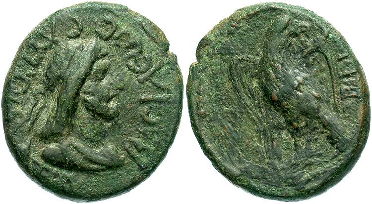 - ΒΑCΙΛΕωC CΑΥΡΟΜΑΤΟΥ. Бюст царя в повязке вправо.
