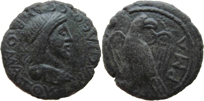 - ΒΑCΙΛΕωC CΑΥΡΟΜΑΤΟΥ. Бюст царя в повязке вправо.