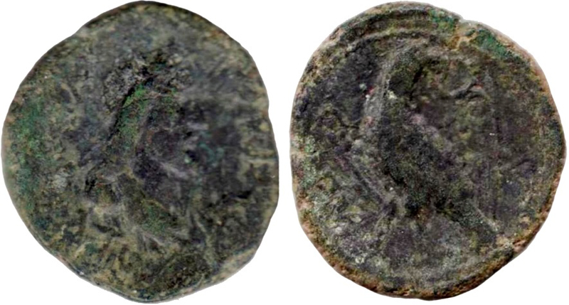 - ΒΑCΙΛΕωC CΑΥΡΟΜΑΤΟΥ. Бюст царя в повязке вправо.