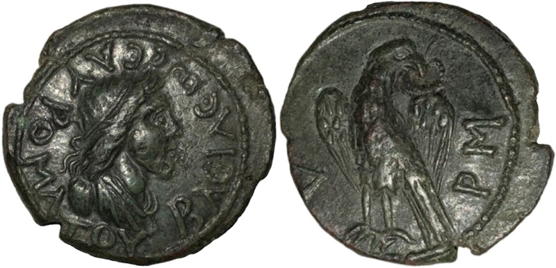 - ΒΑCΙΛΕωC CΑΥΡΟΜΑΤΟΥ. Бюст царя в повязке вправо.