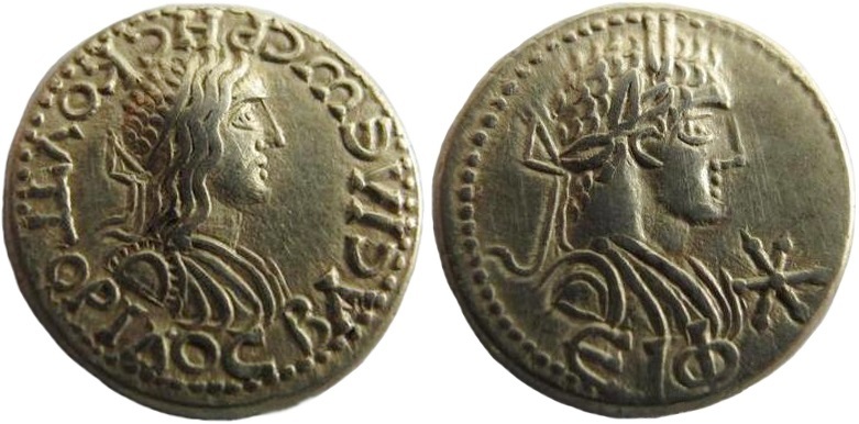 - ΒΑCΙΛΕωC ΡΗCΚΟΥΠΟΡΙΔΟC. Бюст царя вправо.