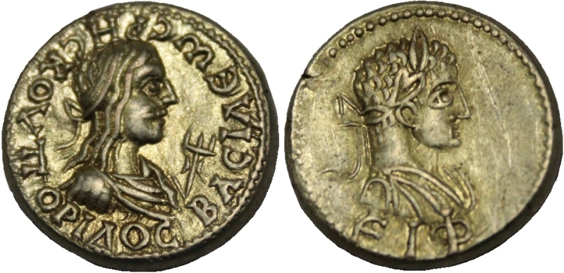 - ΒΑCΙΛΕωC ΡΗCΚΟΥΠΟΡΙΔΟC. Бюст царя вправо, справа «трезубец»