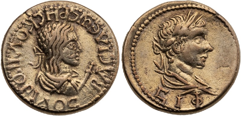 - ΒΑCΙΛΕωC ΡΗCΚΟΥΠΟΡΙΔΟC. Бюст царя вправо, справа «меч».