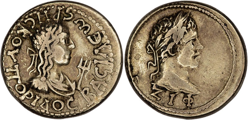 ΒΑCΙΛΕωC ΡΗСΚΟΥΠΟΡΙΔΟС. Бюст царя вправо, справа "трезубец"