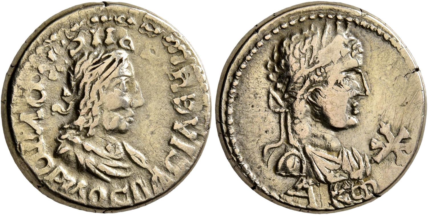 - ΒΑCΙΛΕωC ΡΗСΚΟΥΠΟΡΙΔΟС. Бюст царя в повязке вправо