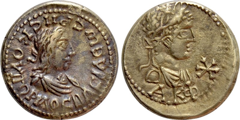 - Бюст императора вправо, год ΑΚΦ (521 г. б.э.), справа "звезда"