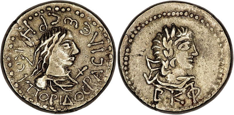ΒΑCΙΛΕωC ΡΗCΚΟΥΠΟΡΙΔΟC. Бюст царя вправо, справа «меч».