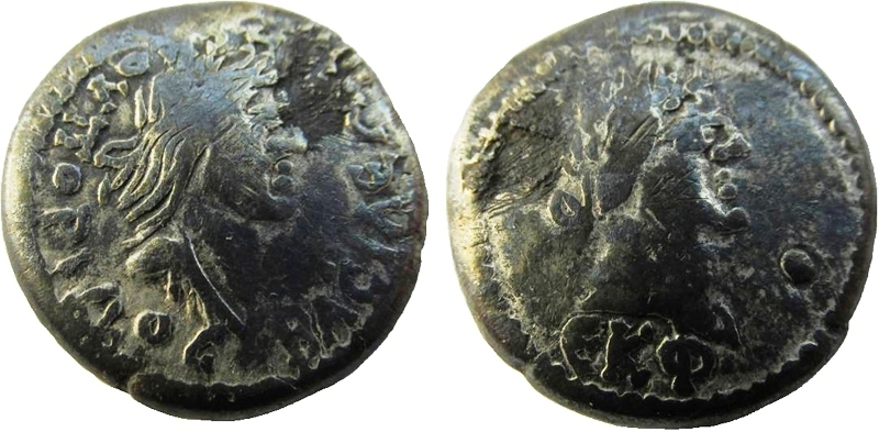 Бюст императора вправо, внизу год ΕΚΦ (525 г. б. э.), справа «точка»