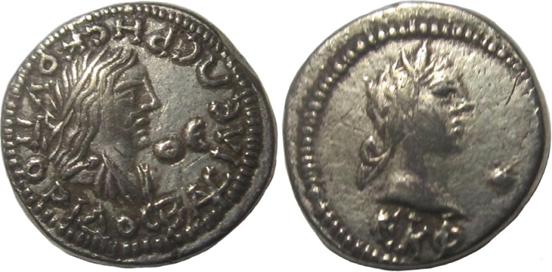 Бюст императора вправо, внизу год ΕΚΦ (525 г. б. э.), справа «точка»