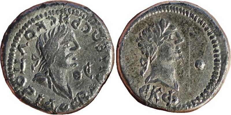 Бюст императора вправо, внизу год ΕΚΦ (525 г. б. э.), справа «точка»