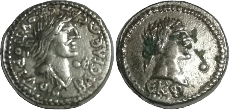 Бюст императора вправо, внизу год ΕΚΦ (525 г. б. э.), справа «точка»
