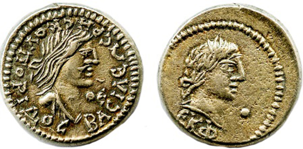 Бюст императора вправо, внизу год ΕΚΦ (525 г. б. э.), справа «точка»