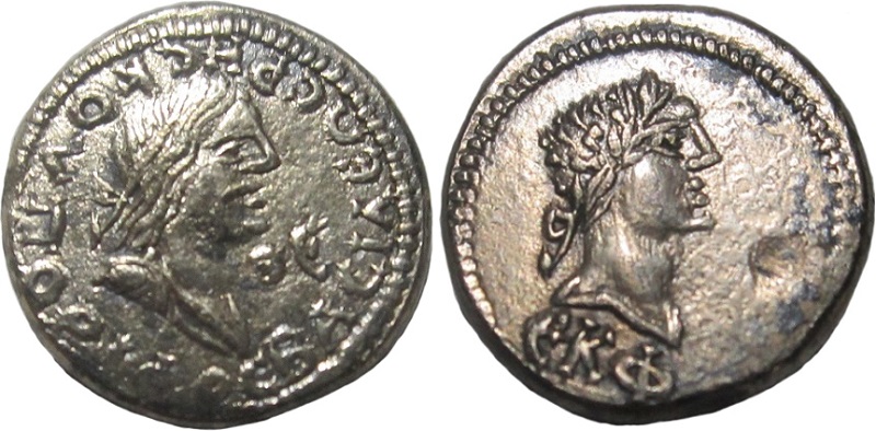 Бюст императора вправо, внизу год ΕΚΦ (525 г. б. э.), справа «точка»