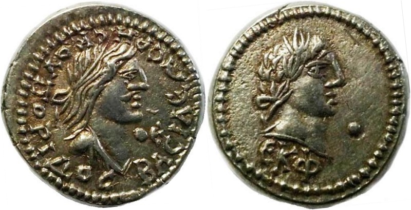 Бюст императора вправо, внизу год ΕΚΦ (525 г. б. э.), справа «точка»