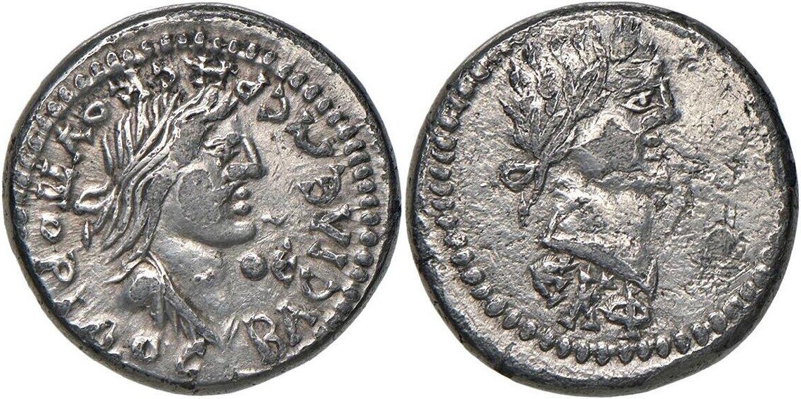 Бюст императора вправо, внизу год ΕΚΦ (525 г. б. э.), справа «точка»