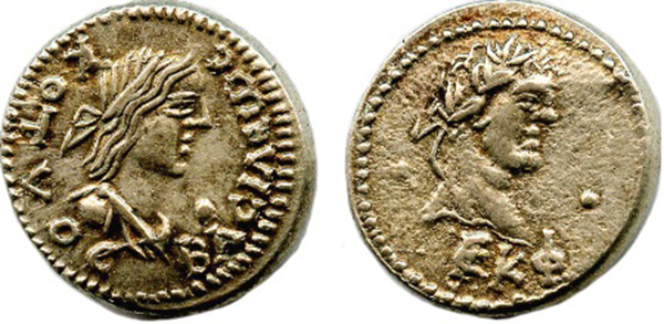 Бюст императора вправо, год ΕΚΦ (525 г. б. э.), справа «точка»