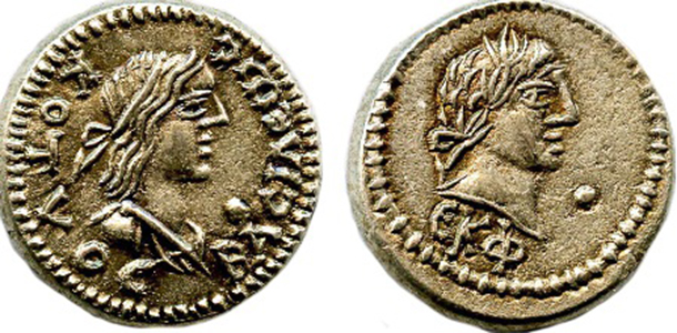 Бюст императора вправо, год ΕΚΦ (525 г. б. э.), справа «точка»