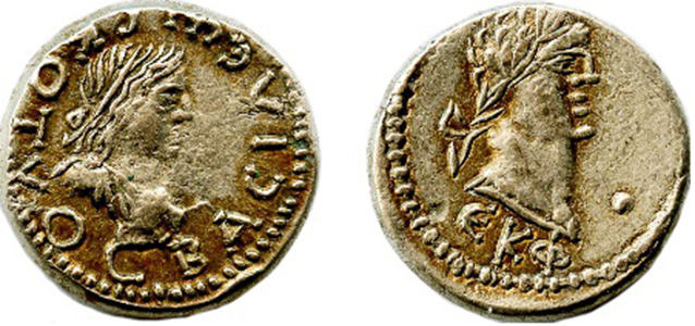 - Бюст императора вправо, год ΕΚΦ (525 г. б.э.), справа «точка»