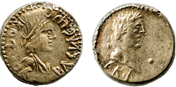 - Бюст императора вправо, год ΕΚΦ (525 г. б.э.), справа «точка»