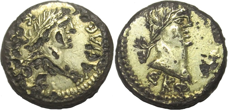 - Бюст императора вправо, год ΕΚΦ (525 г. б.э.), справа «точка»