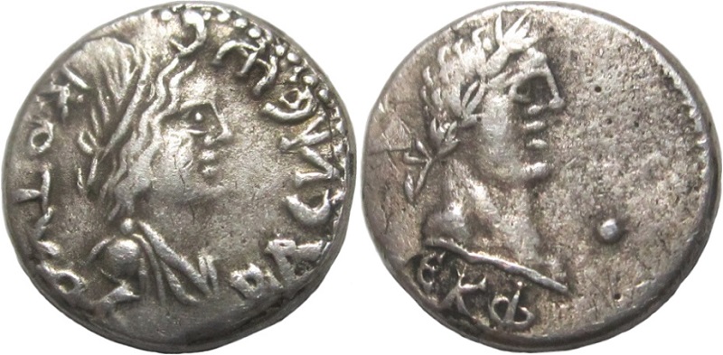 - Бюст императора вправо, год ΕΚΦ (525 г. б.э.), справа «точка»