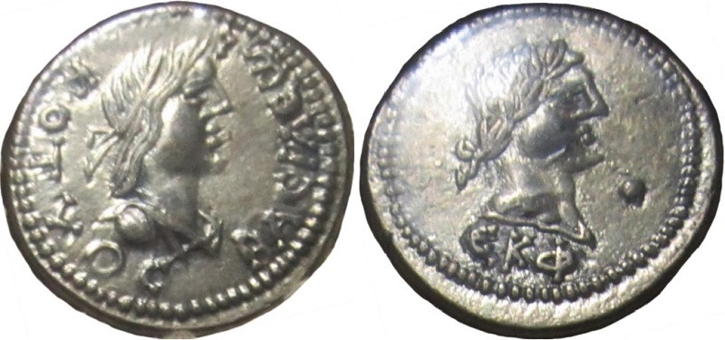 - Бюст императора вправо, год ΕΚΦ (525 г. б.э.), справа «точка»