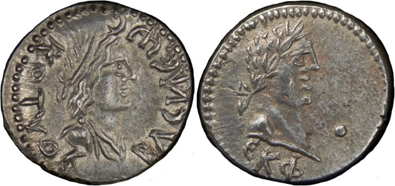 - Бюст императора вправо, год ΕΚΦ (525 г. б.э.), справа «точка»