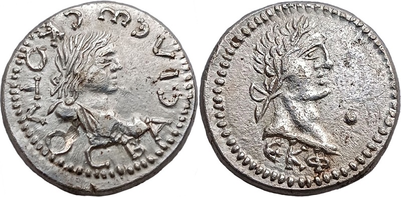 - Бюст императора вправо, год ΕΚΦ (525 г. б.э.), справа «точка»