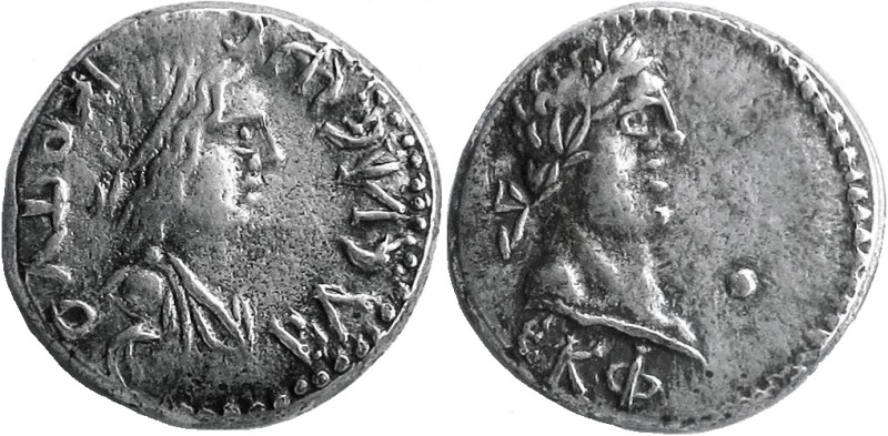 - Бюст императора вправо, год ΕΚΦ (525 г. б.э.), справа «точка»