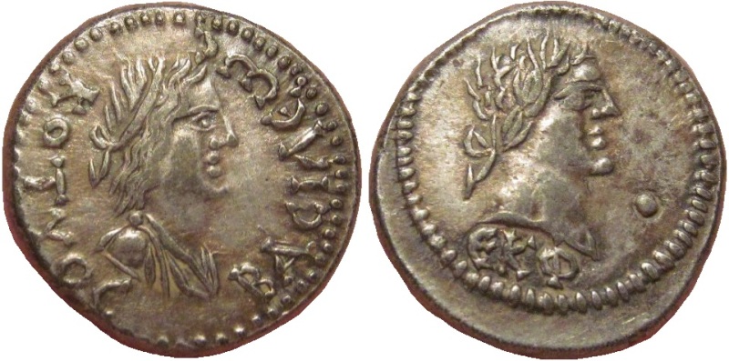 - Бюст императора вправо, год ΕΚΦ (525 г. б.э.), справа «точка»