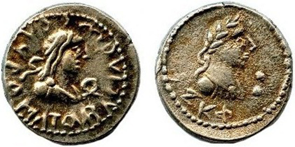 Бюст императора вправо, год ZΚΦ (527 г. б.э.), справа «две точки»