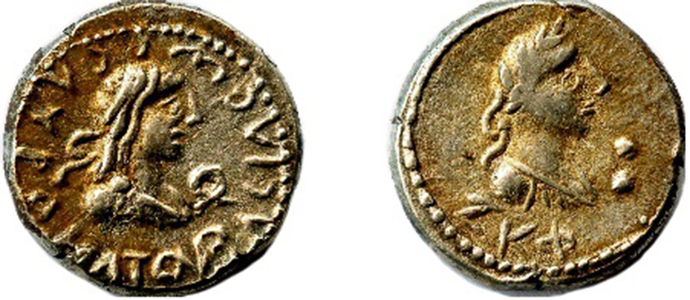 Бюст императора вправо, год ZΚΦ (527 г. б.э.), справа «две точки»