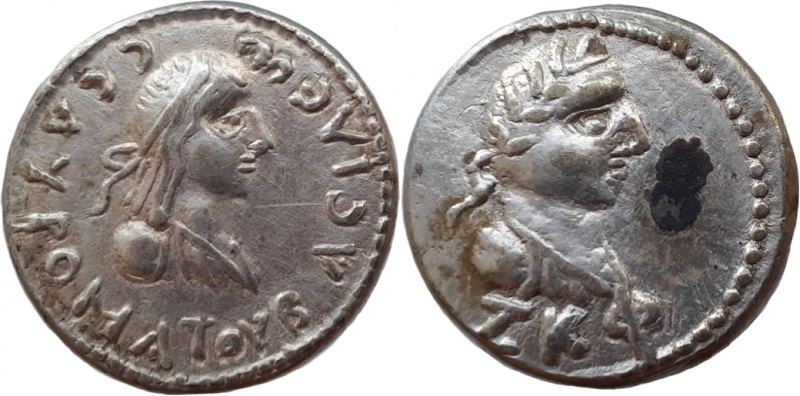 Бюст императора вправо, год ZΚΦ (527 г. б.э.), справа удалёна «точка»