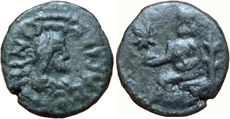 Разновидность по каталогу (1986 г.) В.А.Анохина №686 со знаком денария выше руки. ---------------------------- В каталоге (1986 г.) В.А.Анохина номинал указан как двойной денарий, но знак удвоения денария отсутствует. Так же описание реверса как "Геракл с палицей" не имеет оснований.