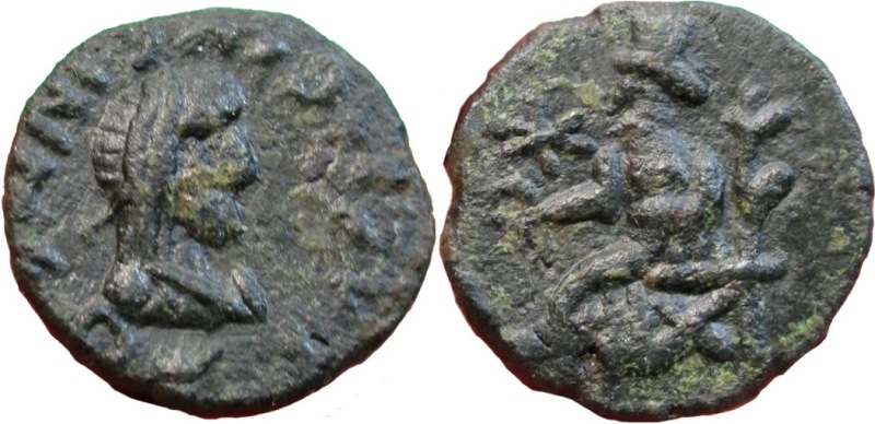 Разновидность по каталогу (1986 г.) В.А.Анохина №686 со знаком денария выше руки. ---------------------------- В каталоге (1986 г.) В.А.Анохина номинал указан как двойной денарий, но знак удвоения денария отсутствует. Так же описание реверса как "Геракл с палицей" не имеет оснований.