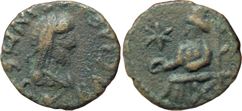 Разновидность по каталогу (1986 г.) В.А.Анохина №686 со знаком денария выше руки. ---------------------------- В каталоге (1986 г.) В.А.Анохина номинал указан как двойной денарий, но знак удвоения денария отсутствует. Так же описание реверса как "Геракл с палицей" не имеет оснований.
