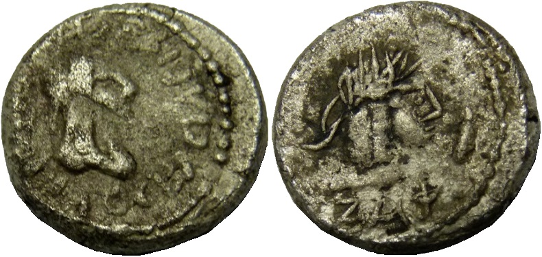 - Бюст императора вправо, год ZΜΦ (547 г. б.э.), справа «палица»